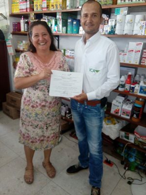 Cartagena, 31 de Julio de 2018. El Instituto Colombiano Agropecuario, ICA, realizó la entrega de registros como comercializadores de insumos agropecuarios, a dos establecimientos agropecuarios del municipio de Santa Rosa del Sur en el departamento de Bolívar, por haber cumplido con los requisitos establecidos en la resolución 1167 de 2010.